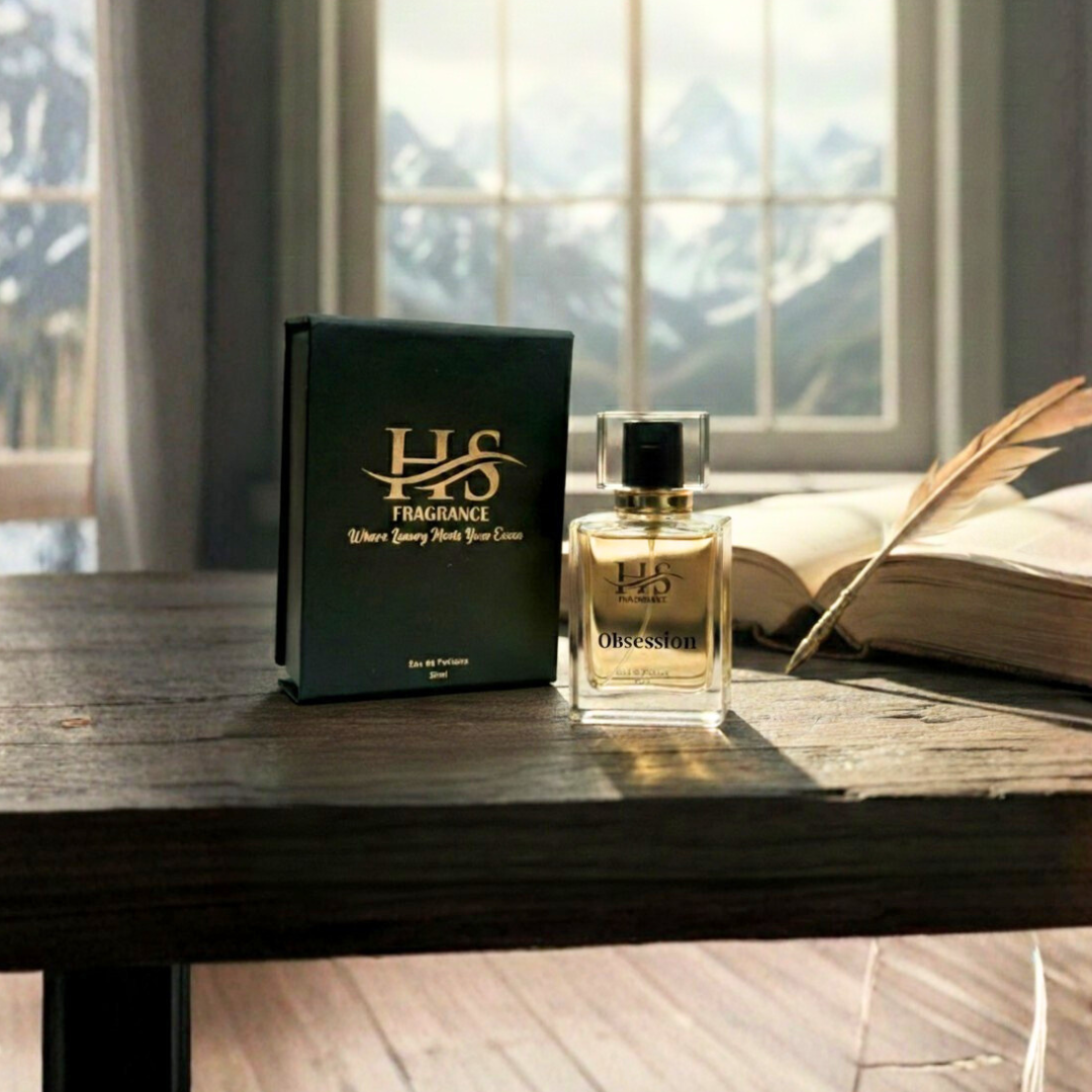 Obsession — a classy, comforting unisex fragrance that blends subtle warmth with modern elegance.
